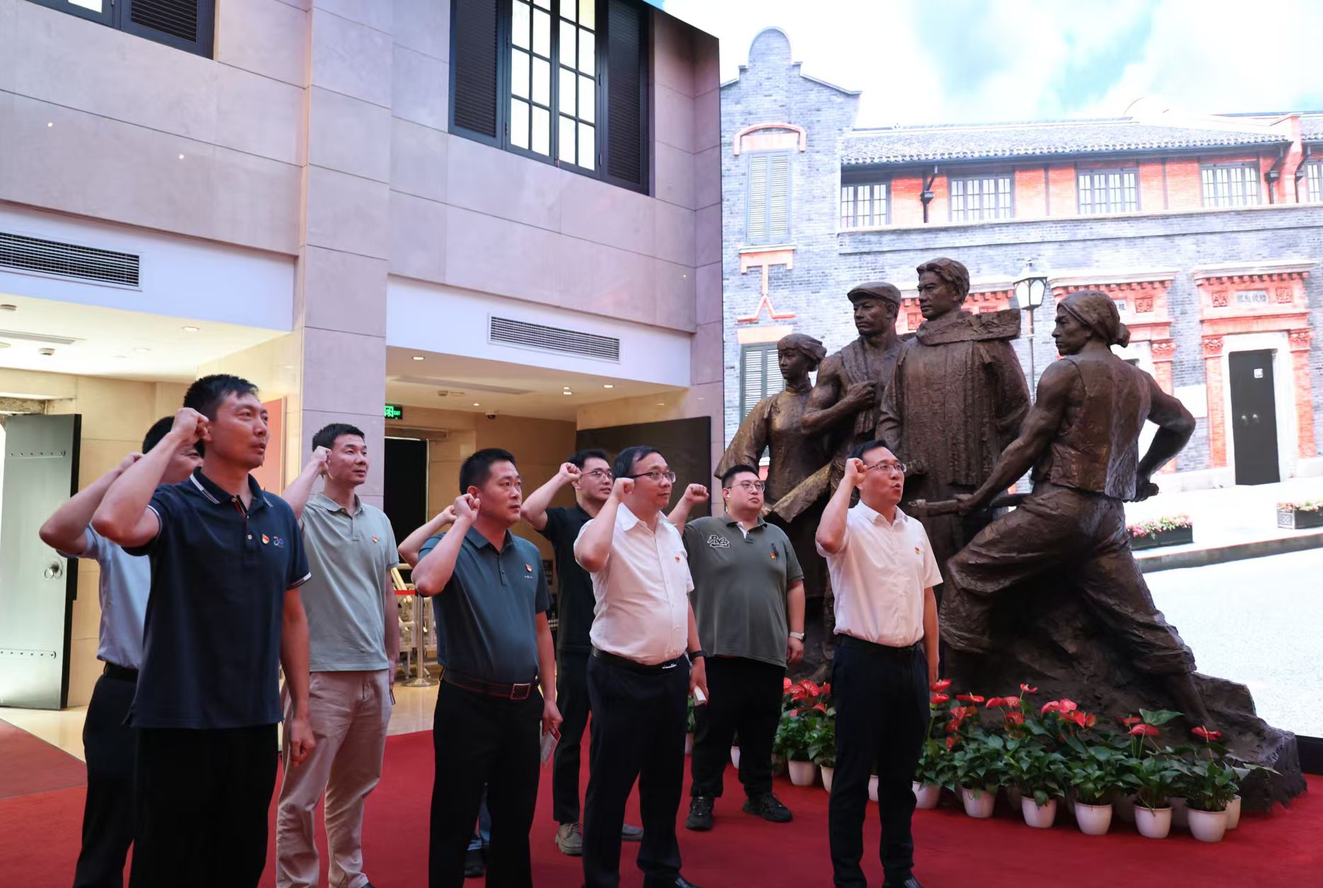 活動(dòng)伊始,雙方黨員參觀了中共二大會(huì)址紀(jì)念館,在參觀序廳、基本陳列館、會(huì)議舊址、黨章學(xué)習(xí)廳和平民女校舊址的過(guò)程中,重溫了中國(guó)共產(chǎn)黨創(chuàng)建初期的崢嶸歲月和光榮傳統(tǒng),參觀完黨員們?cè)谛膹d中,重溫入黨宣誓,追溯入黨初心。