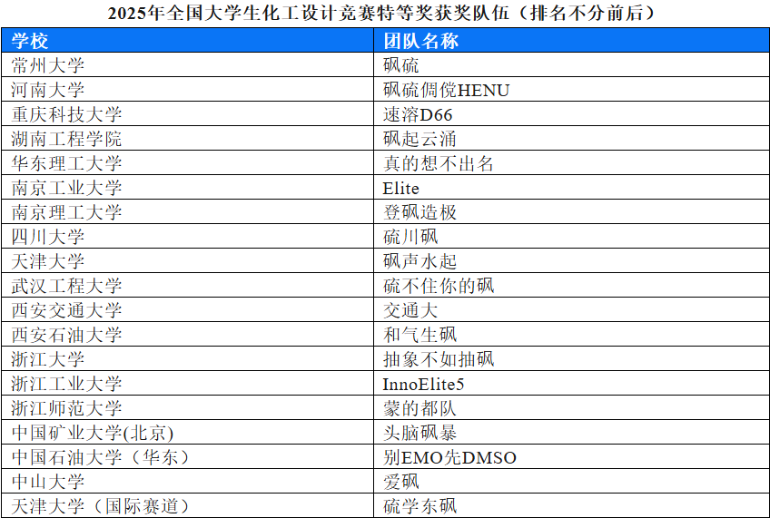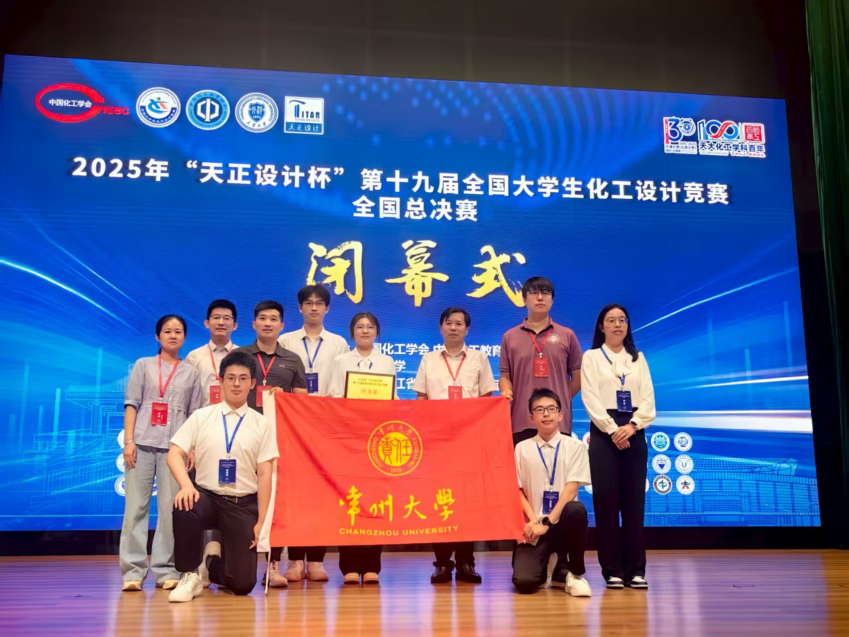 8月11日至8月17日,2025年“天正設(shè)計杯”第十九屆全國大學(xué)生化工設(shè)計競賽總決賽在天津大學(xué)舉行。常州大學(xué)石油化工學(xué)院砜硫隊作品《福建凱美特年產(chǎn)1.5萬噸二甲基亞砜項目》(參賽隊員:常佩源、張皓博、許正梁、薛晴、謝露;指導(dǎo)老師:石劍、馬江權(quán)、謝德華、周滿、黎珊)經(jīng)過江蘇省省賽、華東賽區(qū)選拔賽以及全國總決賽的激烈角逐,斬獲第十九屆全國大學(xué)生化工設(shè)計競賽特等獎。