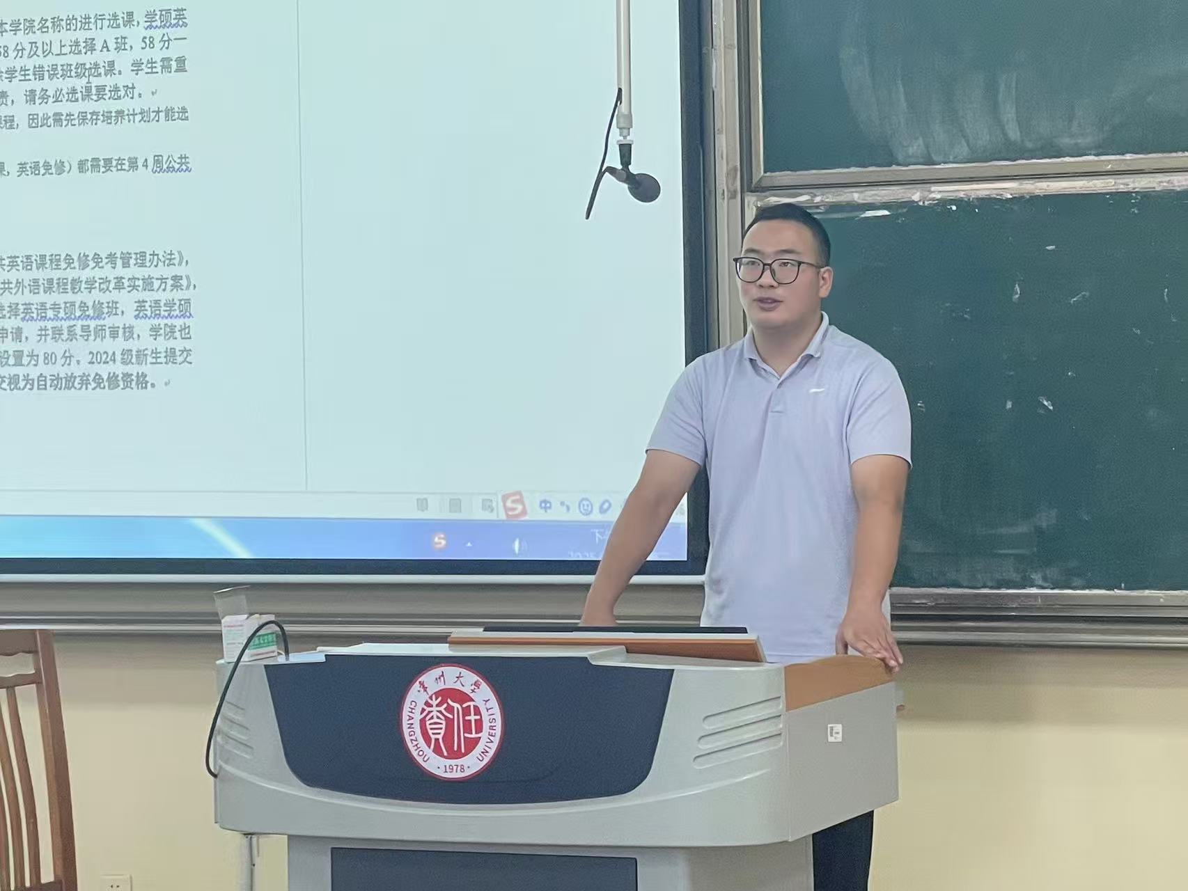 最后,研究生秘書(shū)陳科向大家介紹了各專業(yè)教學(xué)工作安排、導(dǎo)師研究生雙選工作、選課的具體要求和注意事項(xiàng),幫助新生盡快熟悉本專業(yè)培養(yǎng)計(jì)劃和要求、科學(xué)規(guī)劃學(xué)習(xí)生活。