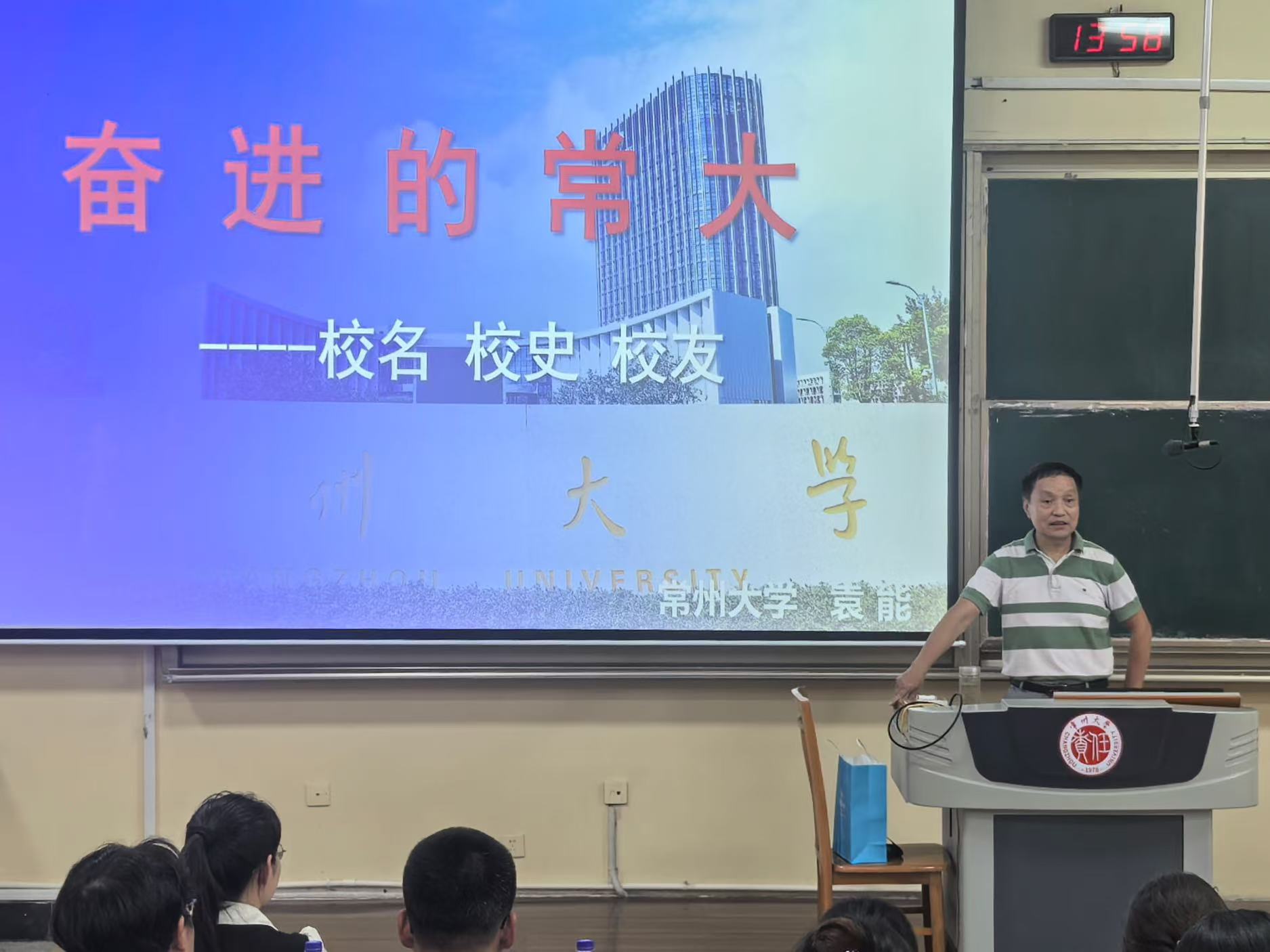 為幫助2025級(jí)研究生新生深入了解常州大學(xué)悠久的歷史和深厚的文化,增強(qiáng)認(rèn)同感與歸屬感,我院于9月12日下午14:00在W7階梯教室開(kāi)展校史校情教育大會(huì)。本次大會(huì)由研究生輔導(dǎo)員趙彩霞主持,我校關(guān)工委副主任袁能擔(dān)任主講,全體研究生新生參會(huì)。