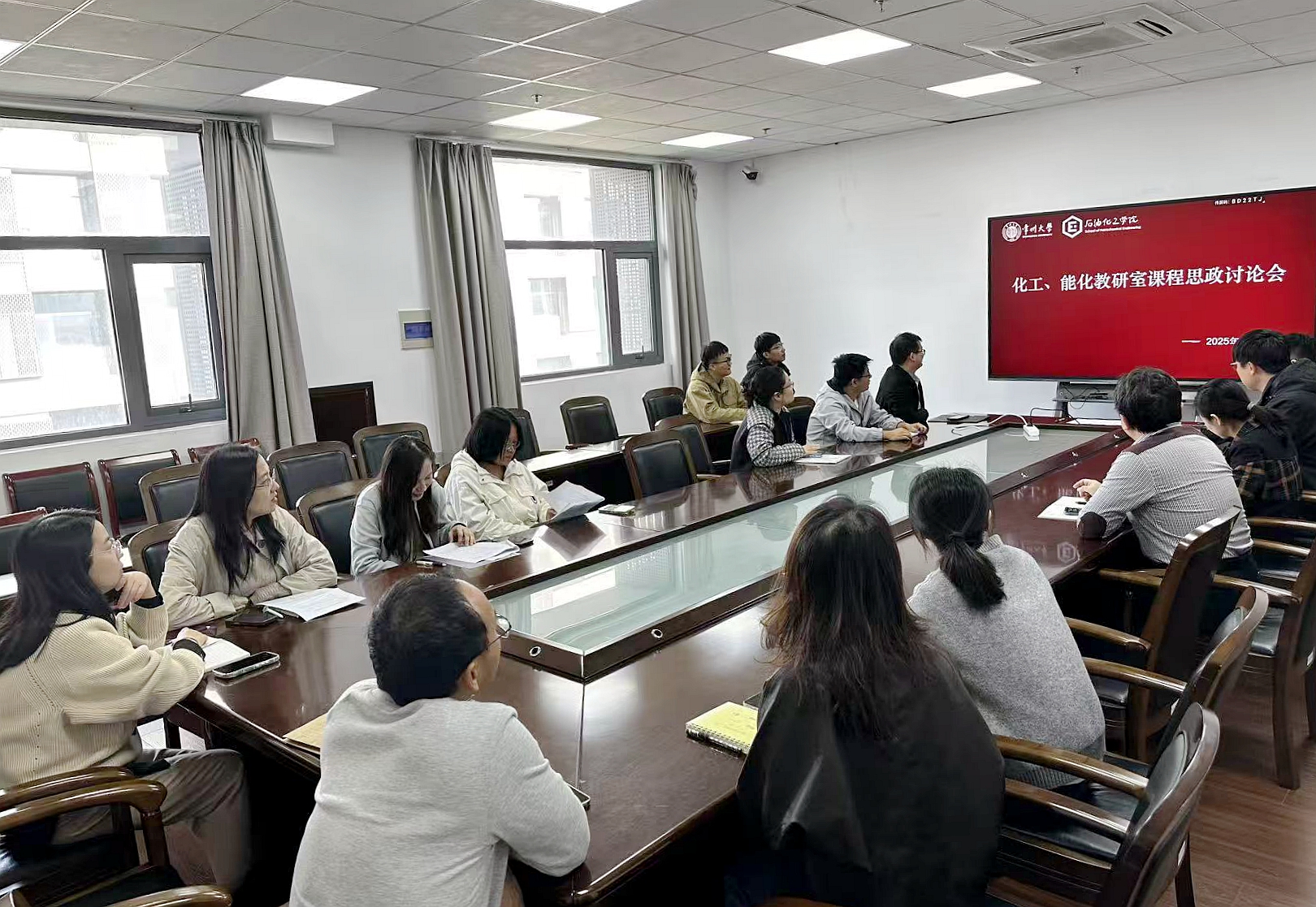 為深入推進課程思政建設(shè),構(gòu)建全員全程全方位育人格局,2025年10月28日,化工、能化教研室組織召開課程思政專題研討會。化工教研室、能化教研室教師參加會議。會上,化工教研室主任石劍介紹了本次會議內(nèi)容,圍繞“課程思政的創(chuàng)新路徑與實踐策略”展開交流。