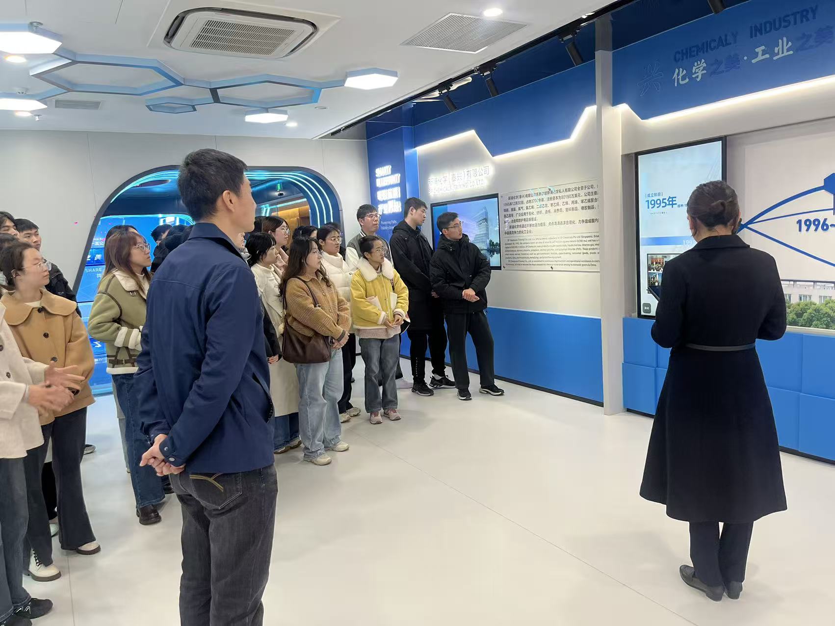 師生一行參觀了企業(yè)展廳,工作人員講解了新浦化學(xué)的發(fā)展歷史、智能控制系統(tǒng)、生產(chǎn)工藝流程,讓同學(xué)們直觀地了解化工生產(chǎn)運行模式和智能化轉(zhuǎn)型實踐。