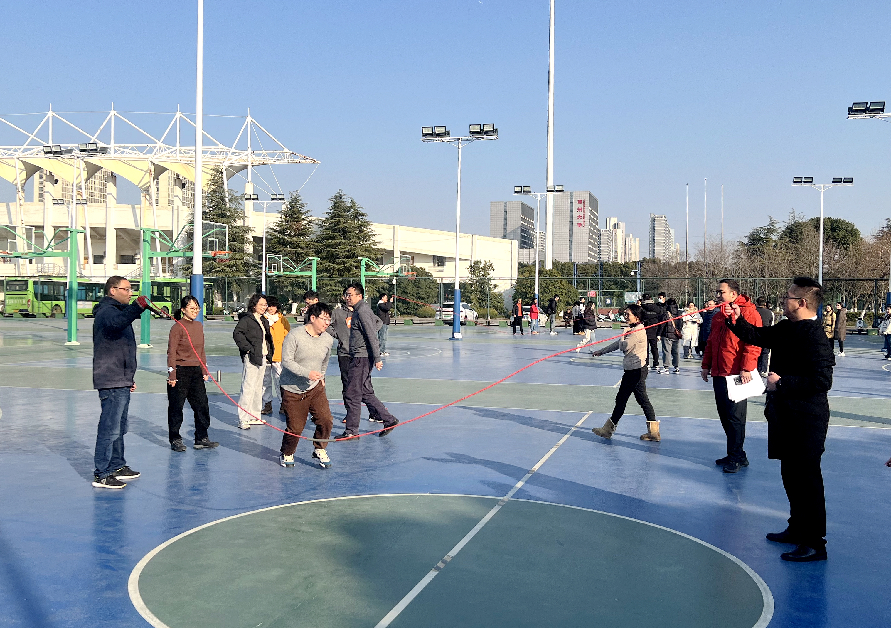 比賽現(xiàn)場氣氛熱烈,歡聲笑語不斷,老師們踴躍組隊參與配合默契,長繩翻飛,身姿躍動,現(xiàn)場的加油聲、歡呼聲交織一片,驅散了冬日的寒意,充分展現(xiàn)了學院教職工昂揚向上的精神風貌。