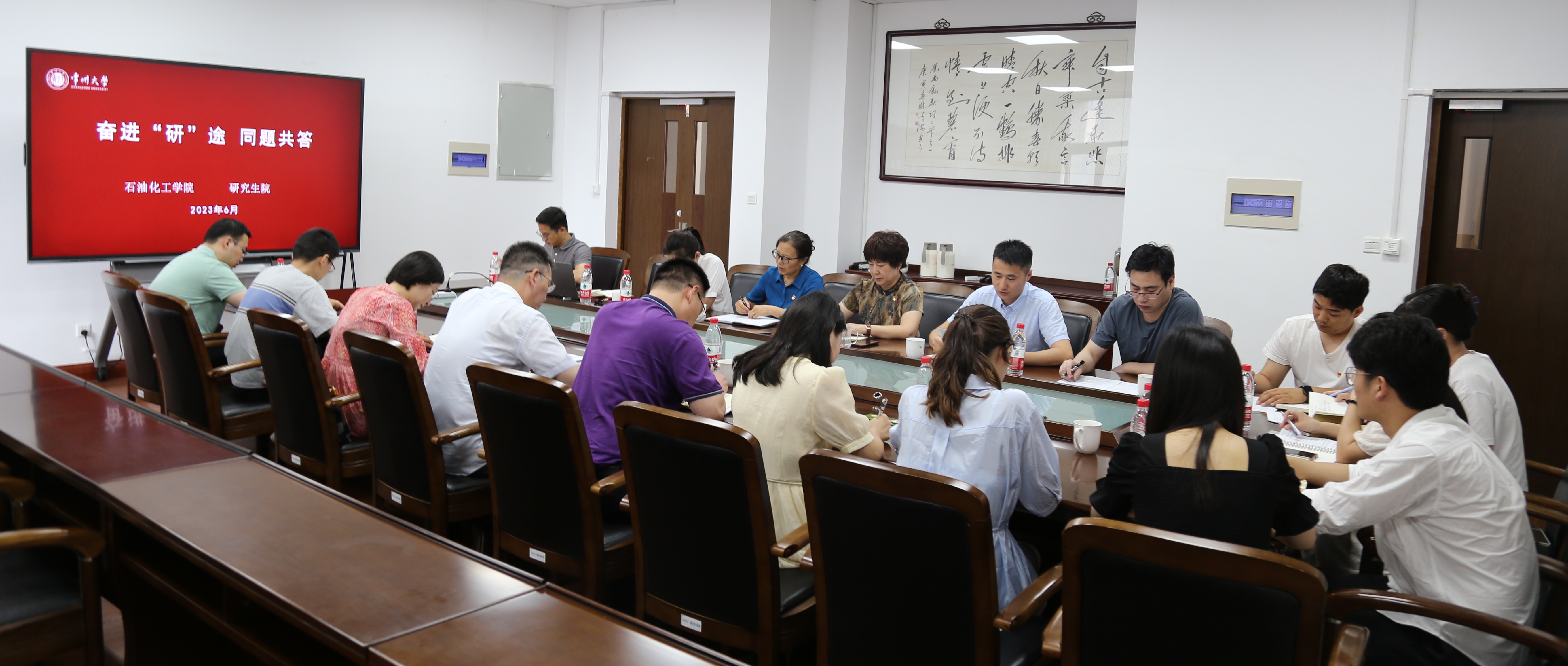 為深化教育改革,在育人工作上“同題共答”,進一步提升研究生培養(yǎng)質(zhì)量,2023年6月21日上午,我院和研究生院開展研究生培養(yǎng)工作座談會。研究生院黨委書記柳銘、研究生院副院長劉婧、研工部王歡、學位辦盛玲玲、學籍科朱偉、培養(yǎng)科賈音、石油化工學院黨委書記管春英、分管研究生工作副院長黃海、導(dǎo)師代表楊科、研究生教務(wù)秘書喻丹、學院組織員曹婧妤、學生代表和研究生輔導(dǎo)員參加本次活動。