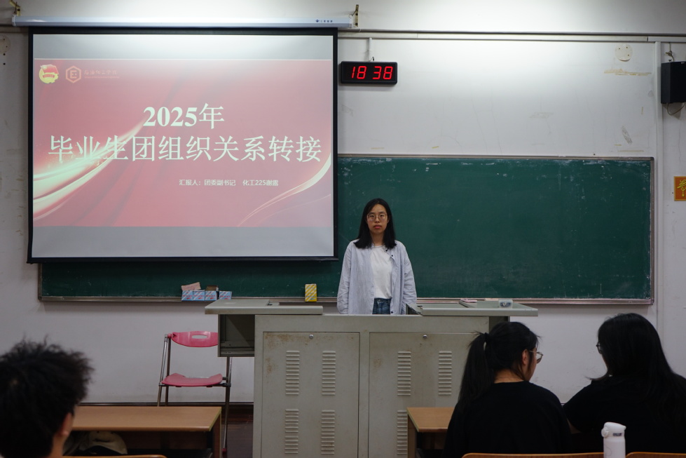 為推進(jìn)團(tuán)組織規(guī)范化建設(shè),確保畢業(yè)生團(tuán)組織關(guān)系轉(zhuǎn)接工作順利進(jìn)行,我院于5月22日在W1209教室開(kāi)展了2025屆畢業(yè)生團(tuán)組織關(guān)系轉(zhuǎn)接工作會(huì)議,會(huì)議由我院團(tuán)委副書記化工225謝露主講,各畢業(yè)班團(tuán)支書參加。