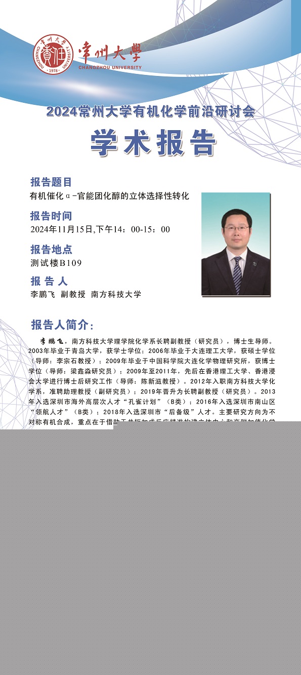 | 【學(xué)術(shù)報(bào)告】11月15日學(xué)術(shù)報(bào)告—李鵬飛副教授 南方科技大學(xué) ;朱燦青年研究員、錢輝副教授 復(fù)旦大學(xué) |