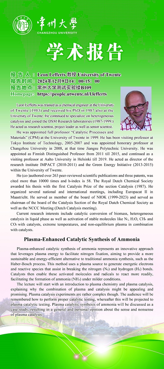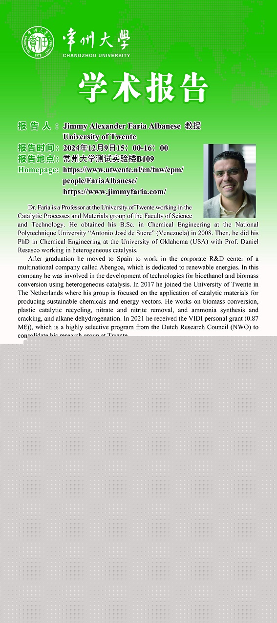 | 【學(xué)術(shù)報告】12月9日學(xué)術(shù)報告—Leon Lefferts教授、 Jimmy Alexander Faria Albanese教授 University of Twente |