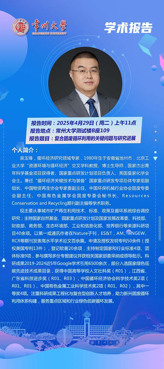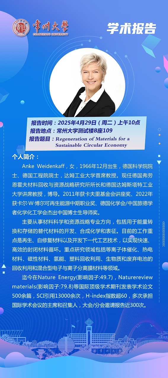 | 【學(xué)術(shù)報(bào)告】4月29日學(xué)術(shù)報(bào)告—Anke Weidenkaff院士 德國(guó)達(dá)姆斯塔特工業(yè)大學(xué);吳玉鋒教授 北京工業(yè)大學(xué) |