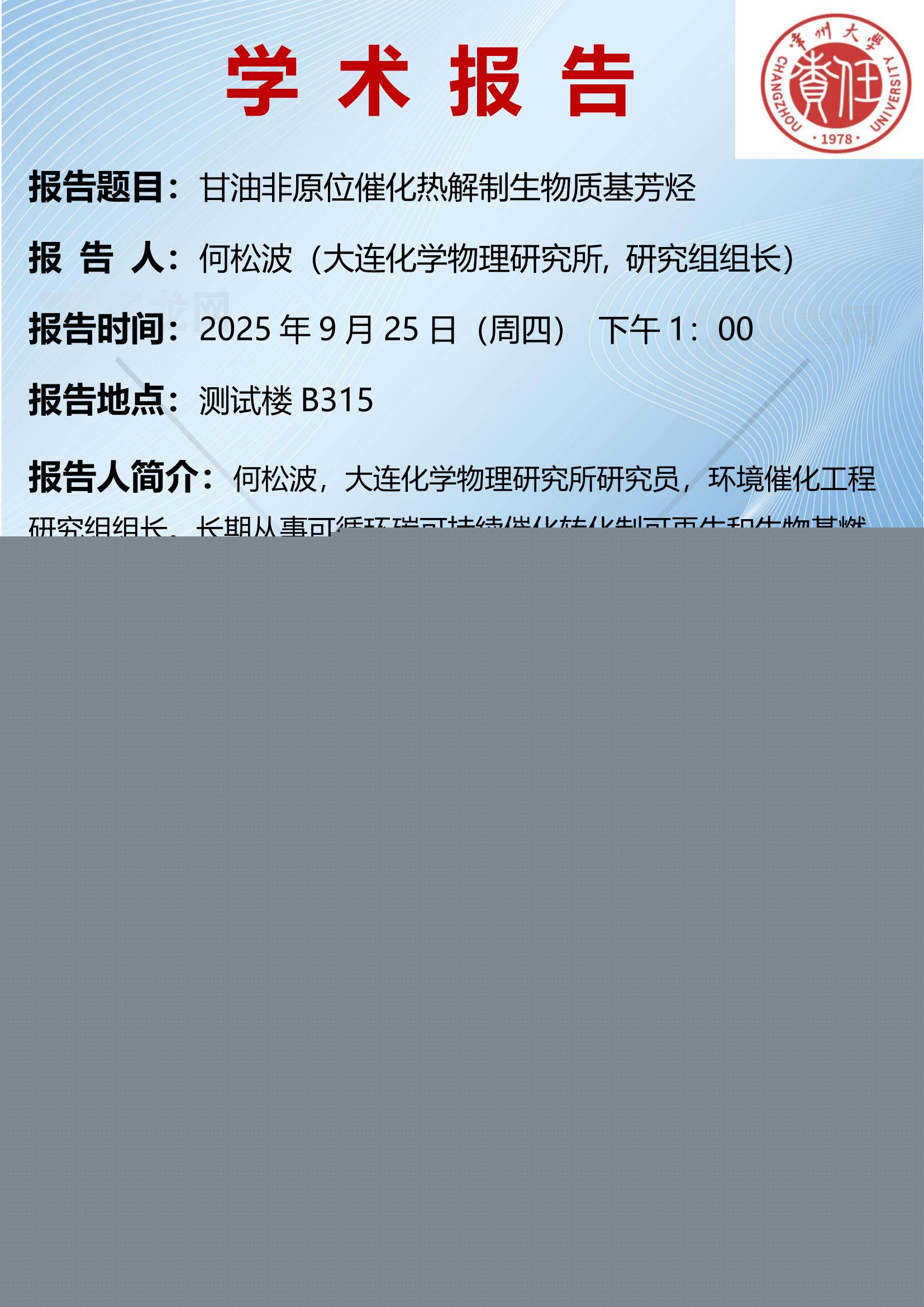 【學術報告】9月25日甘油非原位催化熱解制生物質(zhì)基芳烴