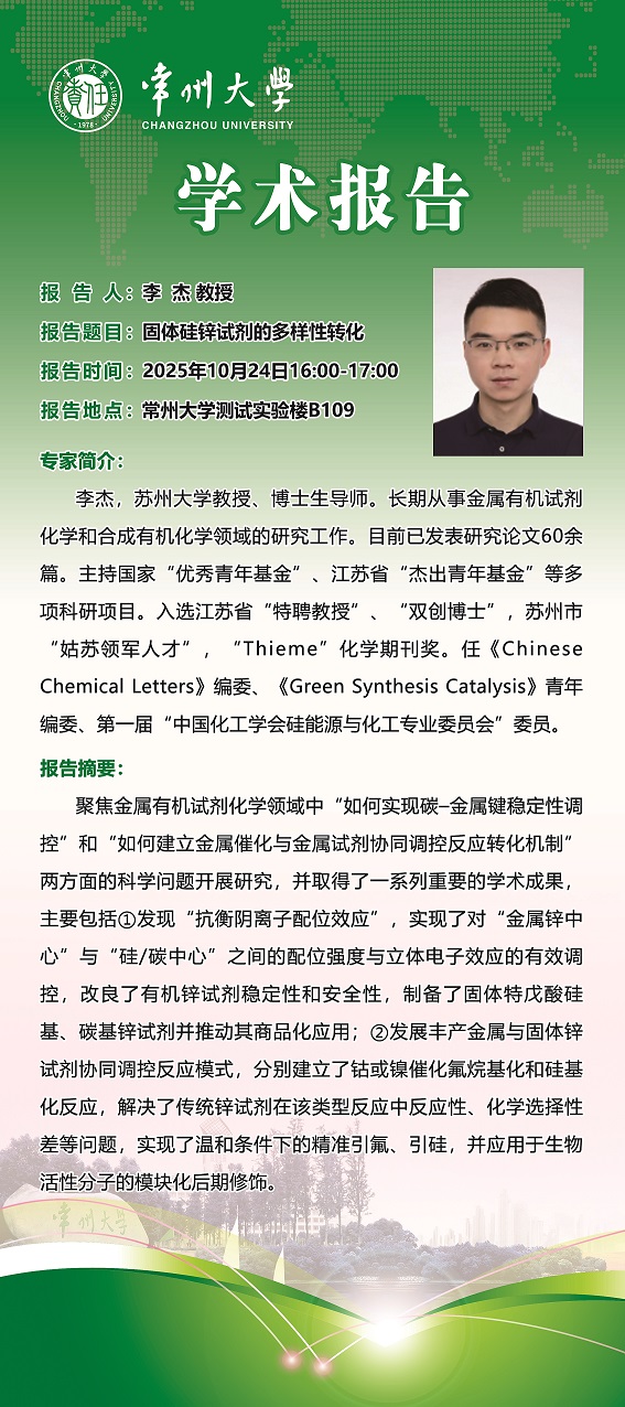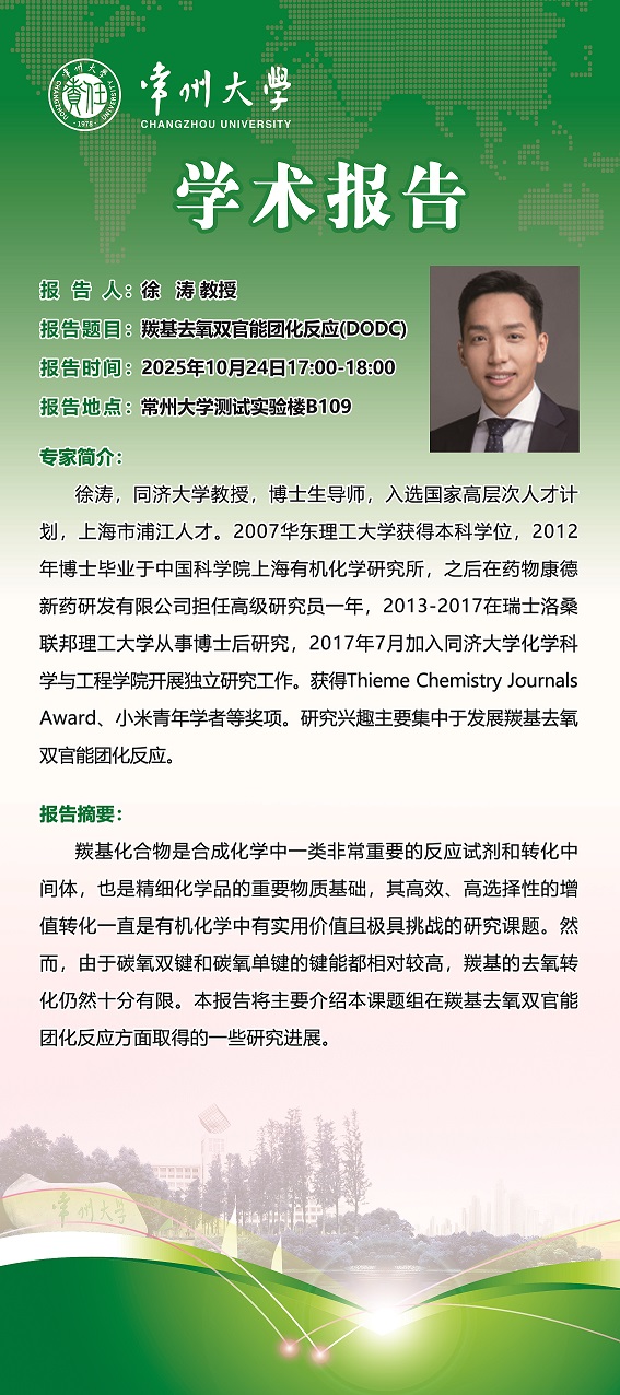| 【學(xué)術(shù)報告】10月24日功能雜環(huán)研究院學(xué)術(shù)報告——李杰教授 蘇州大學(xué) 徐濤教授 同濟(jì)大學(xué) |