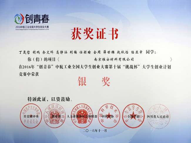 The National College Students' Entrepreneurship Competition came to an end at the University of Electronic Science and Technology of China on November 19, 2016. In the finals, our entrepreneurial team from Changzhou University, Changzhou Weian Materials Co., Ltd., won a silver medal in the entrepreneurial practice competition. This is a major breakthrough of our school for The National College Students' Entrepreneurship Competition. By taking part in these entrepreneurial practice competitions, we can promote disciplinary building and development, train students' innovative spirit and improve the students' innovative ability.
